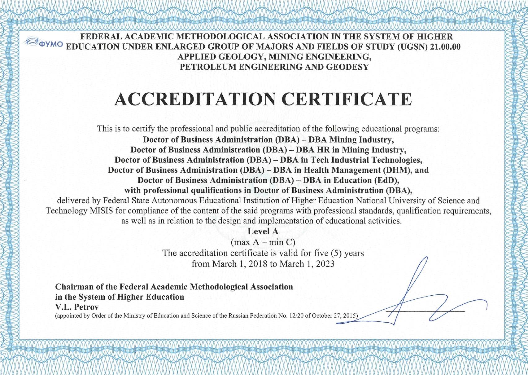 Диплом о профессиональной переподготовке НИТУ МИСИС с присвоением квалификации DBA (Doctor of Business Administration)